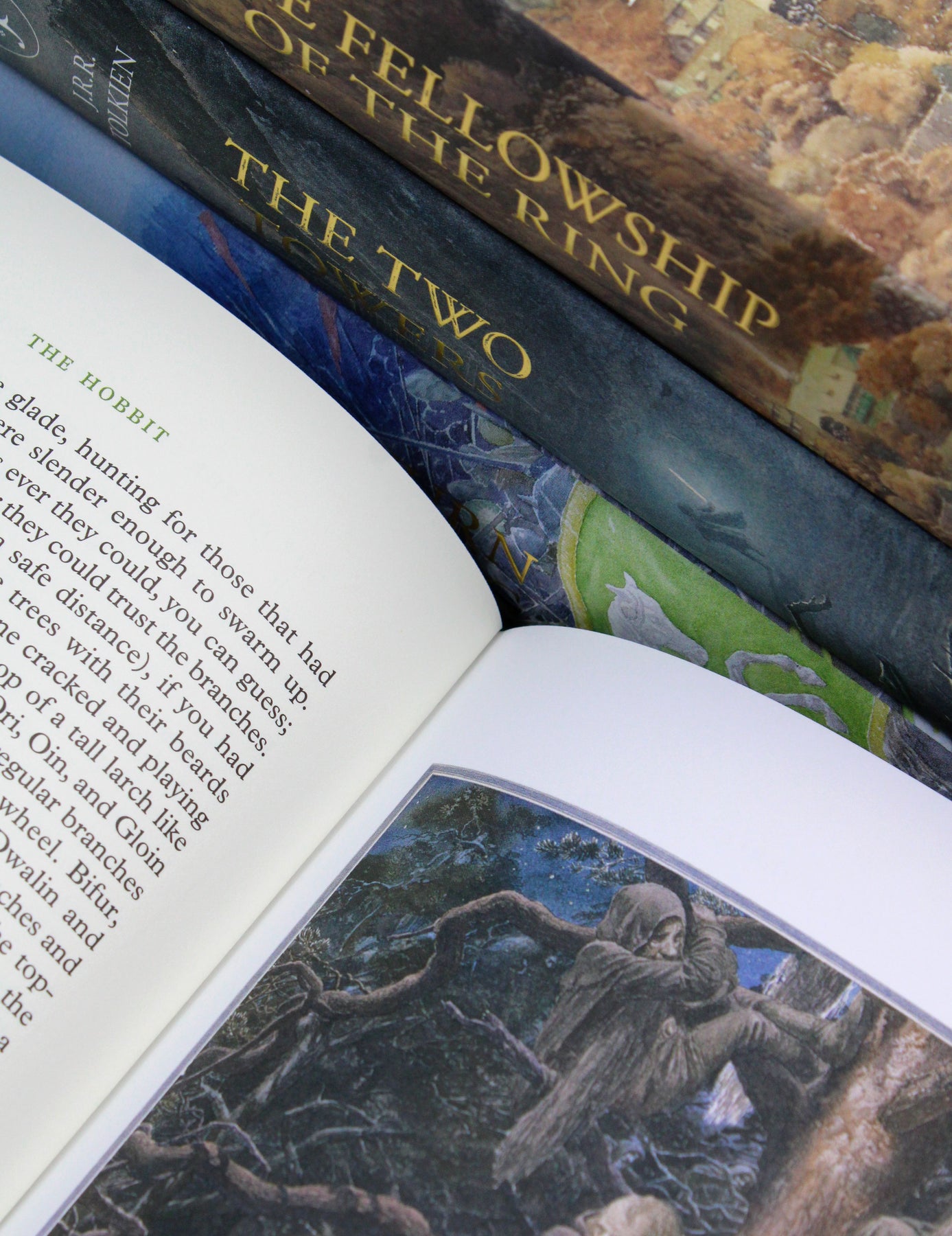 Now, the new hardback editions of these beautifully illustrated works have been collected together into one boxed set of four books. Readers will be able to follow the complete story of the Hobbits and their part in the quest for the Ring – beginning with Bilbo’s fateful visit from Gandalf and culminating in the dramatic climax between Frodo and Gollum atop Mount Doom – while also enjoying over seventy full-page colour paintings and numerous illustrations which accompany this epic tale.