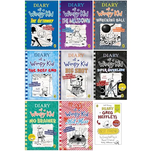 Diary of a Wimpy Kid Series 12-19 Collection 8 Books Set with World Book Day By Jeff Kinney (Hot Mess, The Getaway, The Meltdown, Wrecking Ball, The Deep End, Big Shot, Diper Overlode, No Brainer)