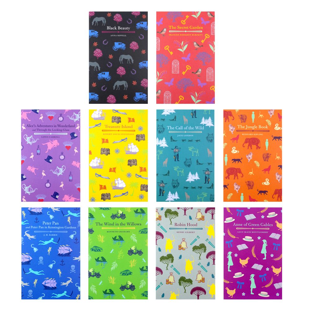 Ten classic books in a slipcase edition. Contains Alice in Wonderland, Treasure Island, The Jungle Book, Peter Pan, Wind in the Willows, Anne of Green Gables, Black Beauty, Robin Hood, The Secret Garden and The Call of the Wild. The slipcase includes a fold-out interactive wall chart illustrated with cherished characters. The poster include space for the child to write in their reactions to the books, and encourages them to read the full library.